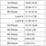 Tuesday, December 16, 2025 Bell Schedule for today: Report to your first period for attendance Assembly 8-9 P1 9:00-9:36 P2 9:40-10:16 P3 10:20-10:56 P4 11:00-11:36 P5 11:40-12:42 Lunch [Read More]
