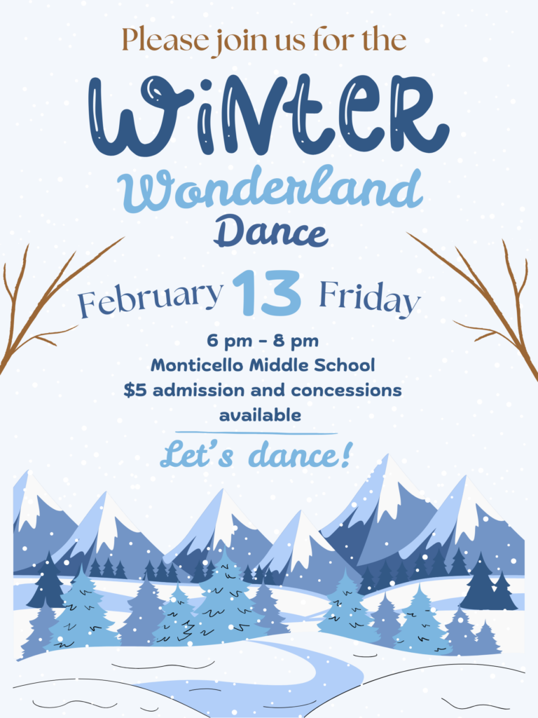 - February 13 – Winter Wonderland Dance (for Monticello Middle School Students)